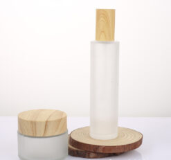 MAYSURE Empty Transparent Frosted Glass Bottle Cosmetic Skincare Lotion Bottle Essential Oil Glass Jars with Wood Cap