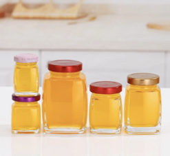 MAYSURE Custom Square Clear Empty Glass Bottles Luxury Glass Food Storage Honey Jar with Screw Caps