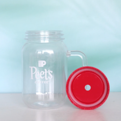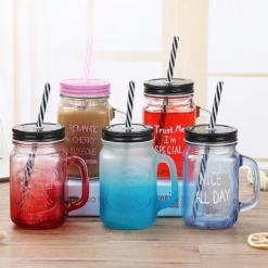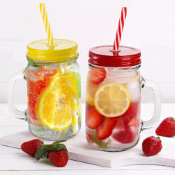 MAYSURE Wholesale Round Glass Mason Jar 16oz Juice Bottle Kitchen Drinkware Features with Glass Handle Screw Lid and Straw